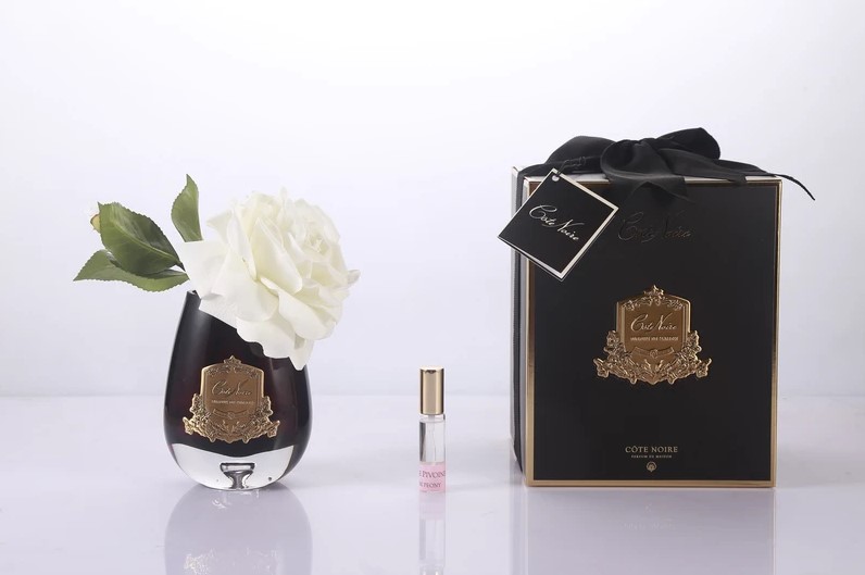 Côte Noire -Tear Drop Tea Rose In Dark Glass – Ivory White